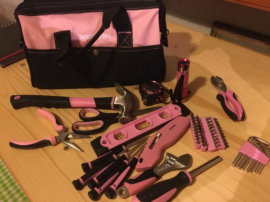 Das letzte Paket ist schwer und ich bin sehr gespannt, was er sich noch ausgedacht hat. Mit ein paar Handgriffen habe ich eine schwarz-rosa Tasche in der Hand, darin befindet sich gutes Werkzeug, was man anhand der Farbe nicht vermuten würde. Mein Grinsen wird breit. „Daran traut sich kein Handwerker, der was auf sich hält und ich erkenne meine Sachen immer sofort wieder.“, ich lache und schwinge den rosa Hammer durch die Luft.