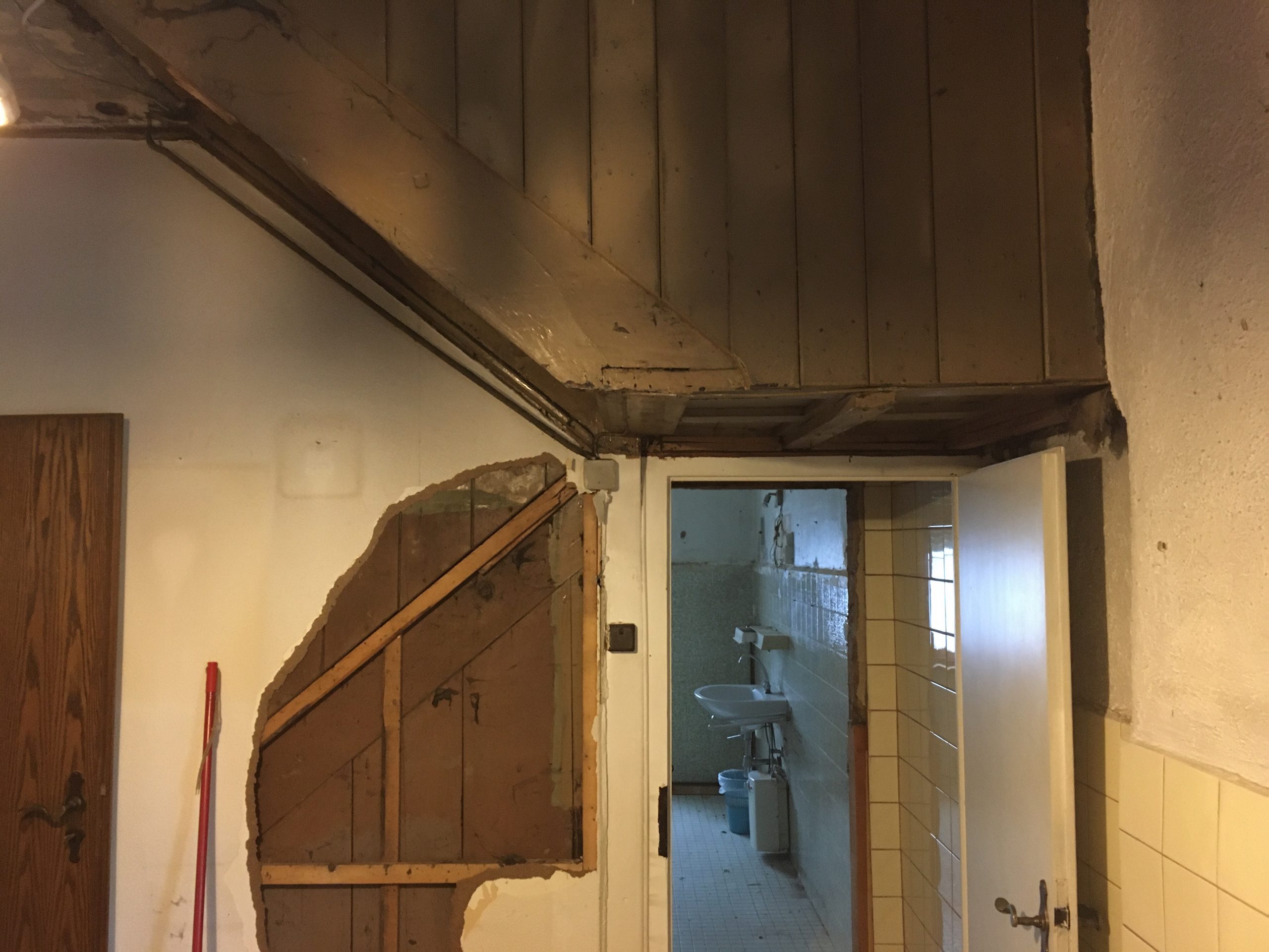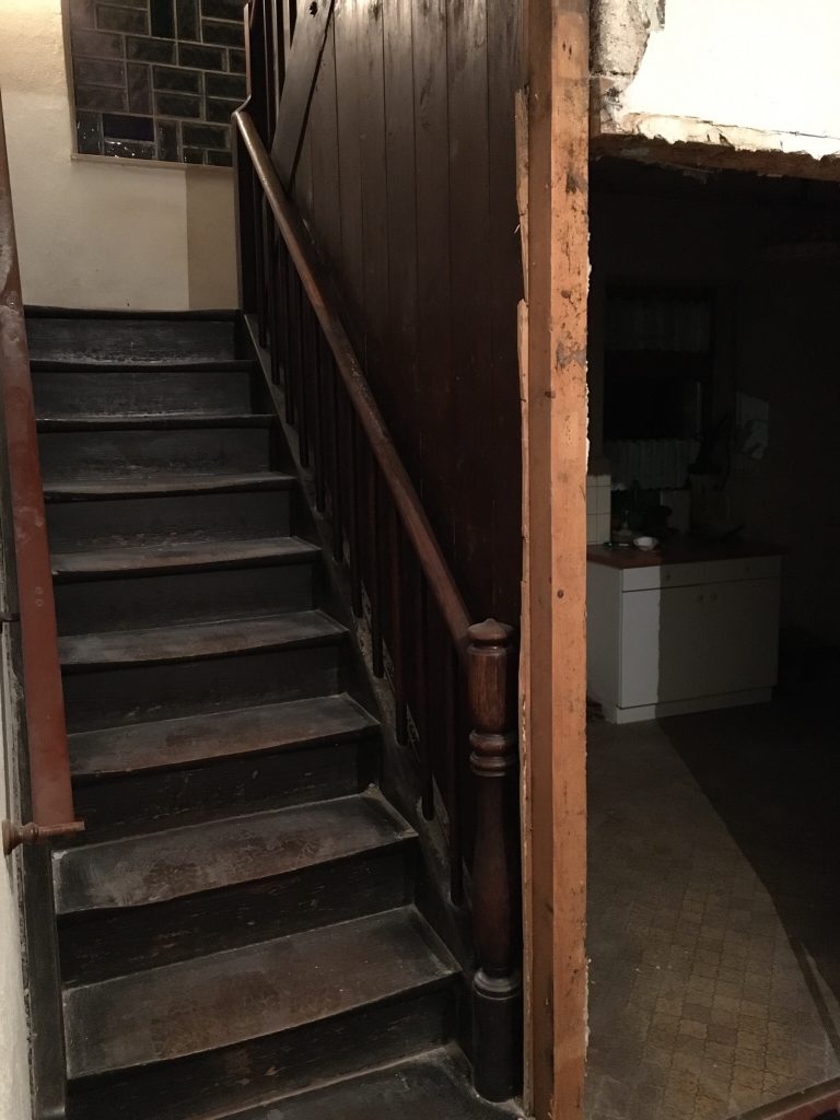 Heute stehen die Hausaufgaben Teil 2 auf dem Programm. Die Überlegungen zu der Aufteilung, wo der Technikraum, das Gäste-WC und die Waschküche hin sollen, werden diskutiert und die Vor- und Nachteile abgewägt. Eigentlich sollte der Keller nicht als Technikraum herhalten, doch mein Mann kommt zu dem Schluss, dass er die Feuchtigkeit dort unten in den Griff bekommt. Nein, wir haben keinen feuchten Keller. Unser Haus hat erstaunlicherweise einen, für die Bauweise, sehr trockenen Keller. Doch da 1870 anders als heute gebaut wurde, besitzt er keine Horizontalsperre und daher dünstet die aufsteigende Feuchtigkeit naturgemäss immer etwas aus. Also, Technik in einen von unseren drei Gewölbekellern. Der Backes wird Gäste-WC mit Zugang vom Esszimmer. Waschmaschine und Trockner finden im Vorratsraum Platz und der Traum von einem großen Treppenhaus mit Wohndiele wird wahr.