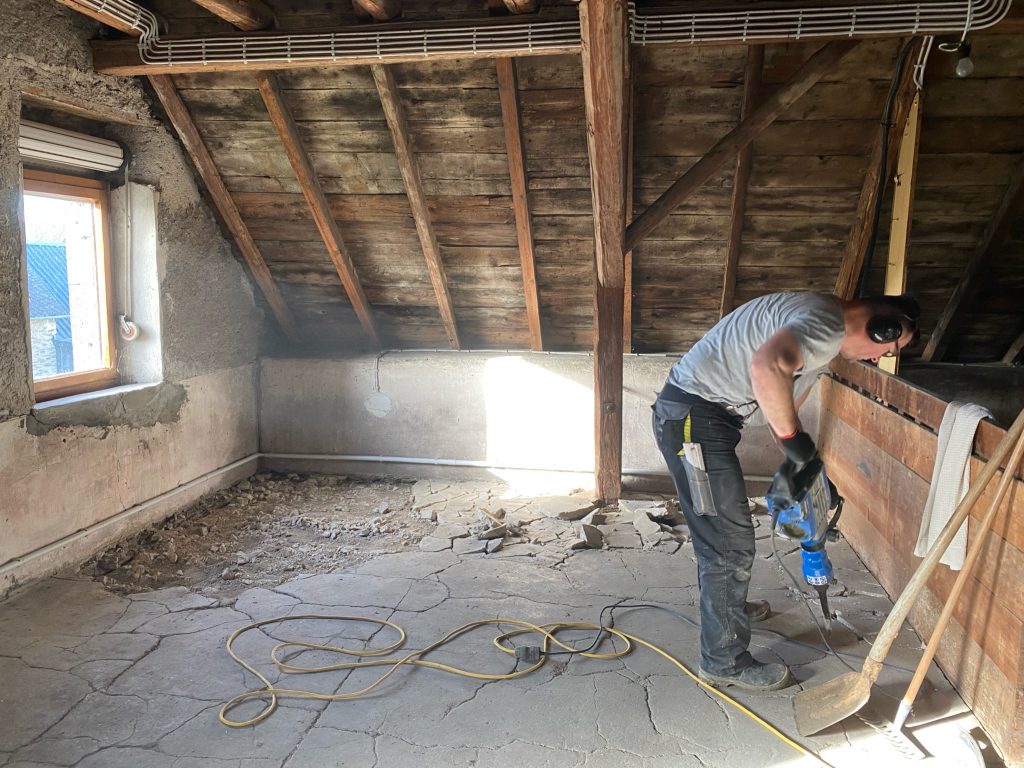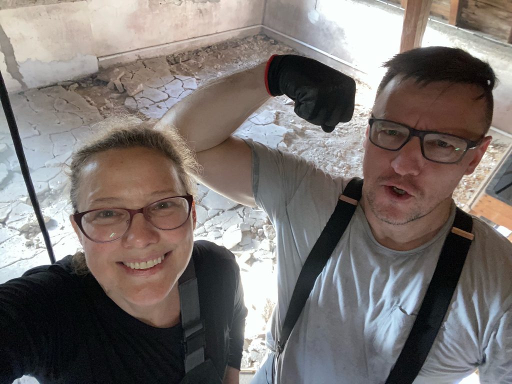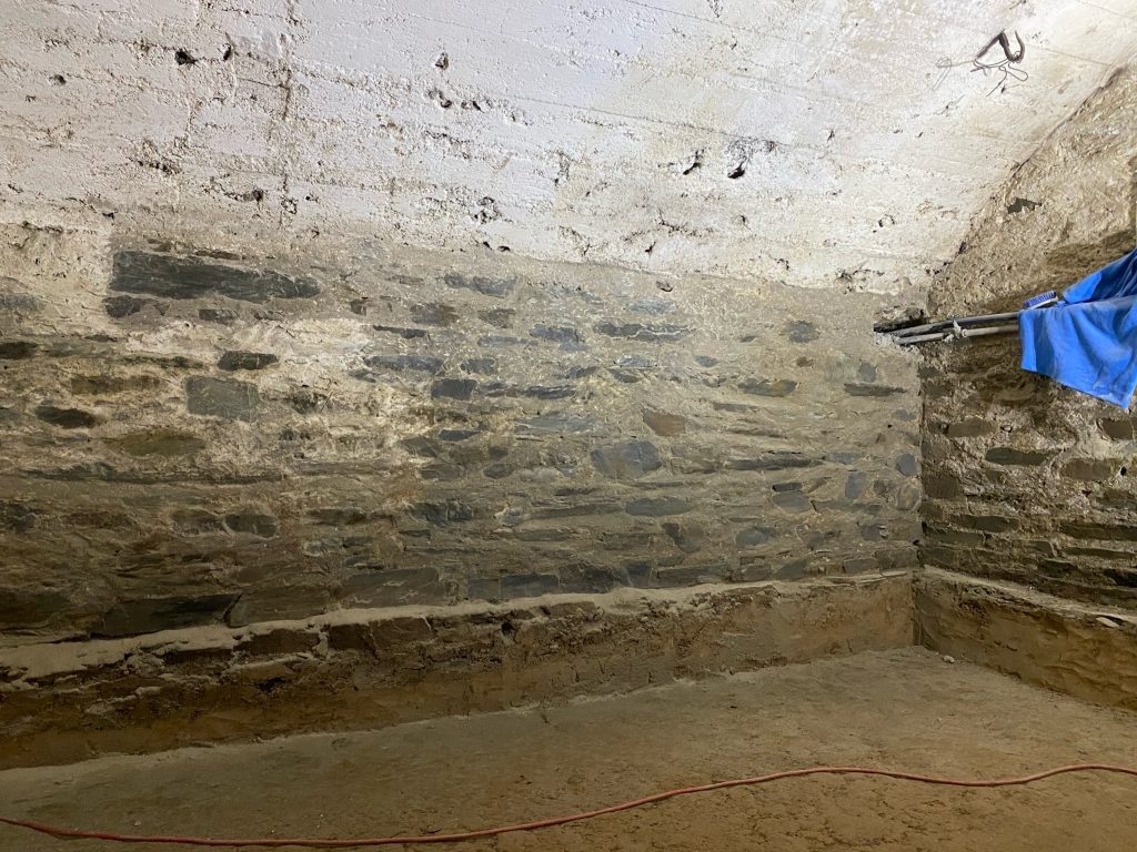 Endlich Wochenende… was machen andere? Chillen, wandern oder ähnliches. Was machen wir? Genau, ab uff de Bau. Ich freue mich sogar, denn jeder Handgriff bringt uns unserem Ziel näher. Über den Winter sollen die Keller fertig werden, damit im Frühjahr die Technik in einem Raum einziehen kann. Da es zu mühsam für uns beide alleine ist, die restliche Erde im Weinkeller auszuheben, gehen wir die Bruchsteinwände an. Irgendjemand hat diese irgendwann mal weiss angepinselt und die Farbe soll wieder runter. Erst hatten wir vor, die Wände mit einem Sandstrahlgerät zu bearbeiten, doch nach einem Test mit der Stahlbürste und einer Bohrmaschine entscheiden wir uns kurzerhand es erstmal so zu versuchen.