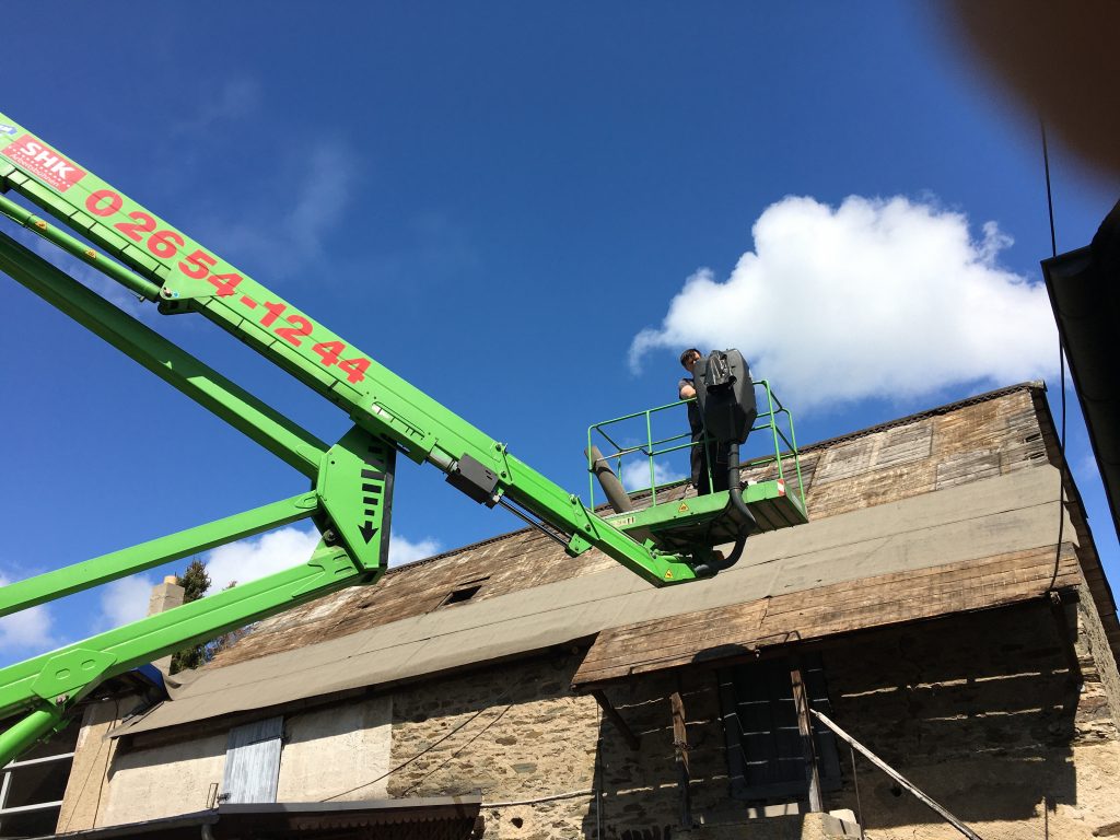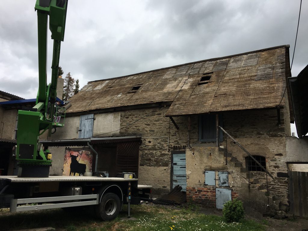 In den letzten Tagen haben wir ja unsere Schaltzentrale umgelegt. Heute fangen wir damit an, dort die Decke zu entfernen. Schatz steigt auf die Leiter setzt sein Hebelwerkzeug an und mit einem Krach sausen einige Paneele nach unten. Eines nimmt den Weg über den Kopf und die Schulter von meinem Handwerker. Mich verfehlen die Bretter knapp. Wow! Ich bin heilfroh, dass ihm nichts passiert ist und stelle fest, wir leben gefährlich. Das hätte auch anders ausgehen können, denn die Decke war nicht richtig befestigt. Einen Vorteil hat es, denn schnell ist sie Geschichte und ich räume die Bretter erleichtert nach draussen.